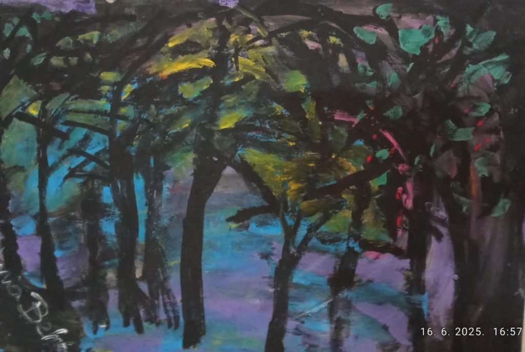 U rukama drži papirnatu čašu i malim plavim očima zvjera uokolo. – Ne znam se vratiti kući. – kaže – Ostat ću na livadi,